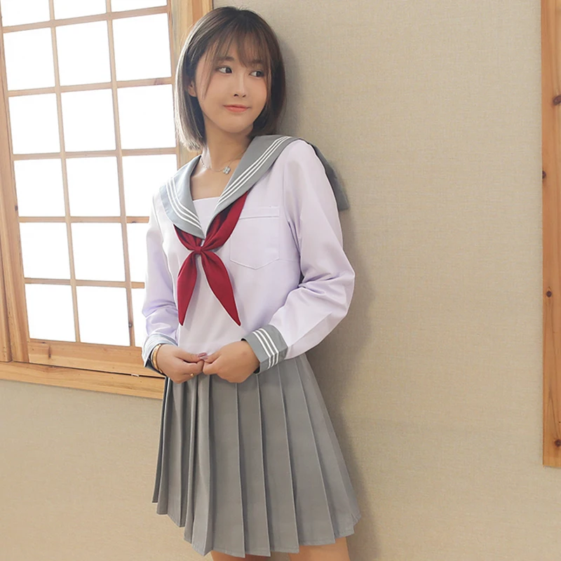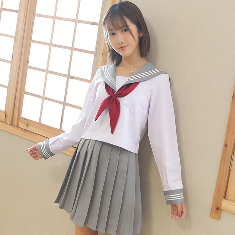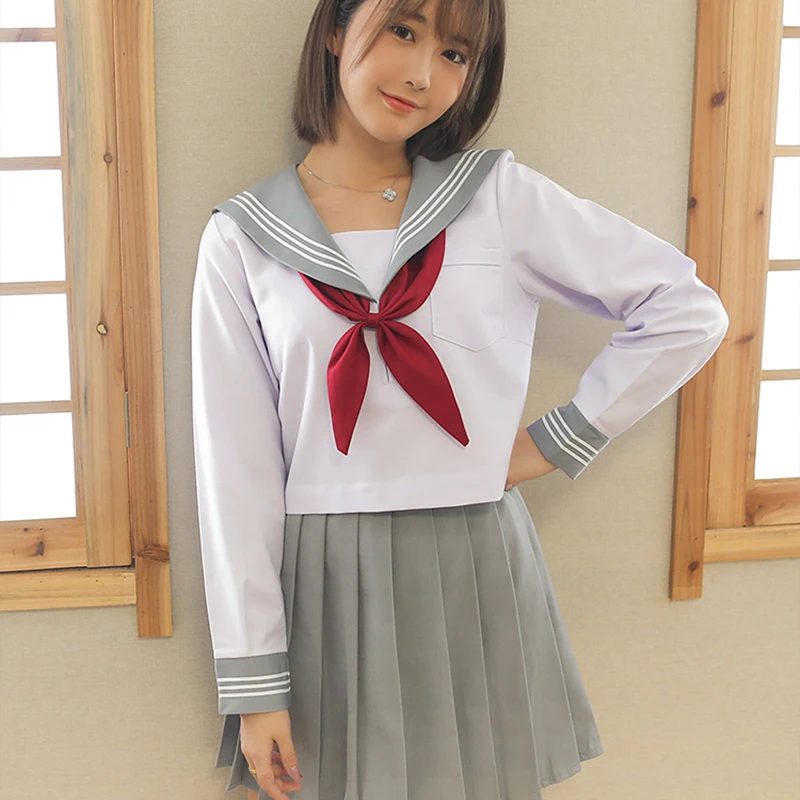 Buy UPHYD Japanese Anime School Uniform Gray JK Sailor Uniforms Long Sleeve Girls Spring Autumn Chorus Performance Sailor Suits