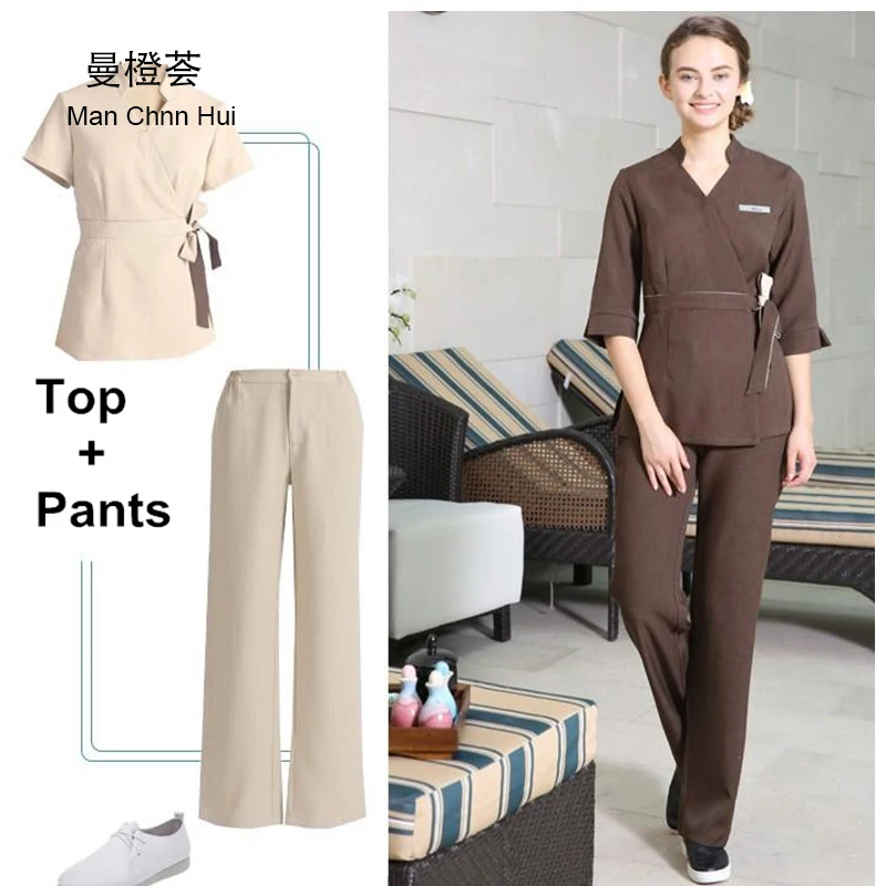 » Limited SPA Workwear 2pcs Sets Spring/Summer Beige Massage Work Uniform Sets Female Hospital Nurse Uniforms Wholesales Beauty Clothing