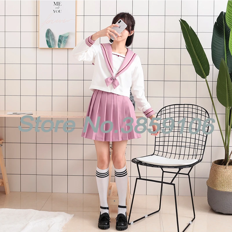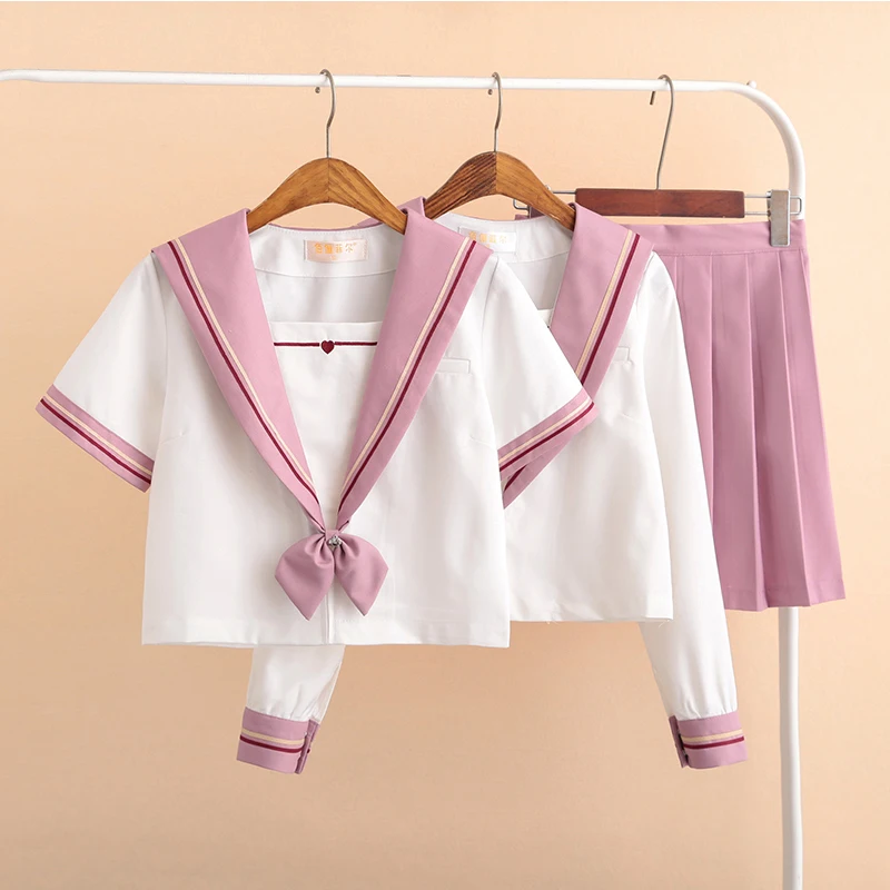 » New New Arrival School Uniform Girl Sailor Suit Sets JK School Uniforms For Girls White Shirt And Pink Skirt Suits Student Cosplay