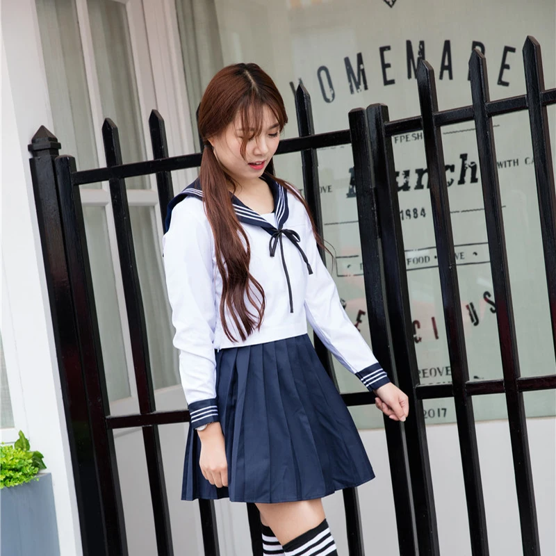 Special Autumn Japanese School Uniforms For Girls Cute Long Length Sailor Tops Pleated Skirt