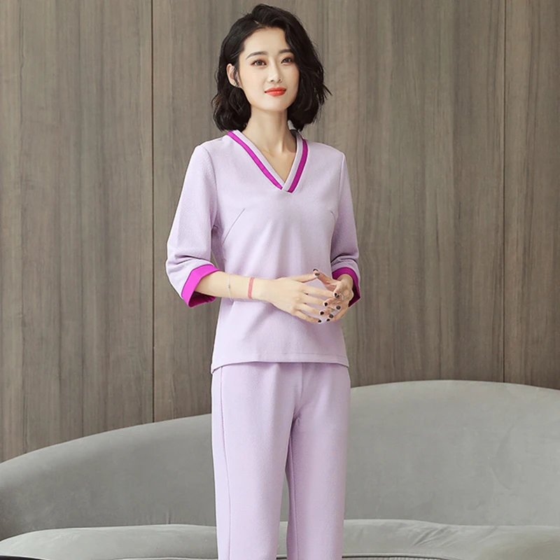 » Special Product Fashion SPA Uniform Custom Made purple Massage Workwear Beauty Uniforms Sets Spring/Summer Latest Work Clothing 2 Colors V Neck
