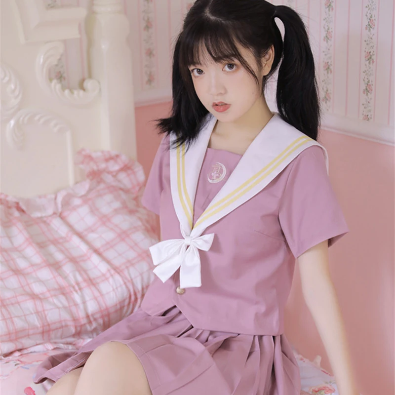 » Special UPHYD Pink British Preppy Style School Girls Uniform Cosplay Suits Chorus Performance Short Sleeve JK School Uniforms S-3XL