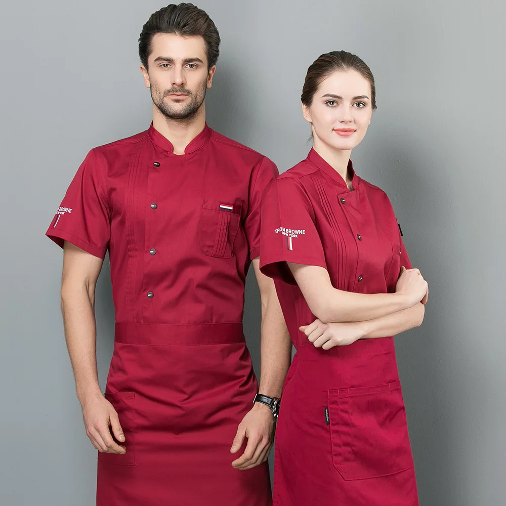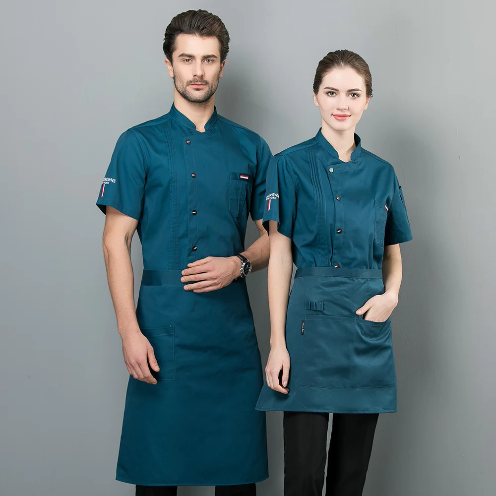 Discount Unisex Kitchen Chef Uniform Bakery Food Service Short Sleeve Breathable single Breasted Cook Wear 4 Colors Wholesale Chef Jacket