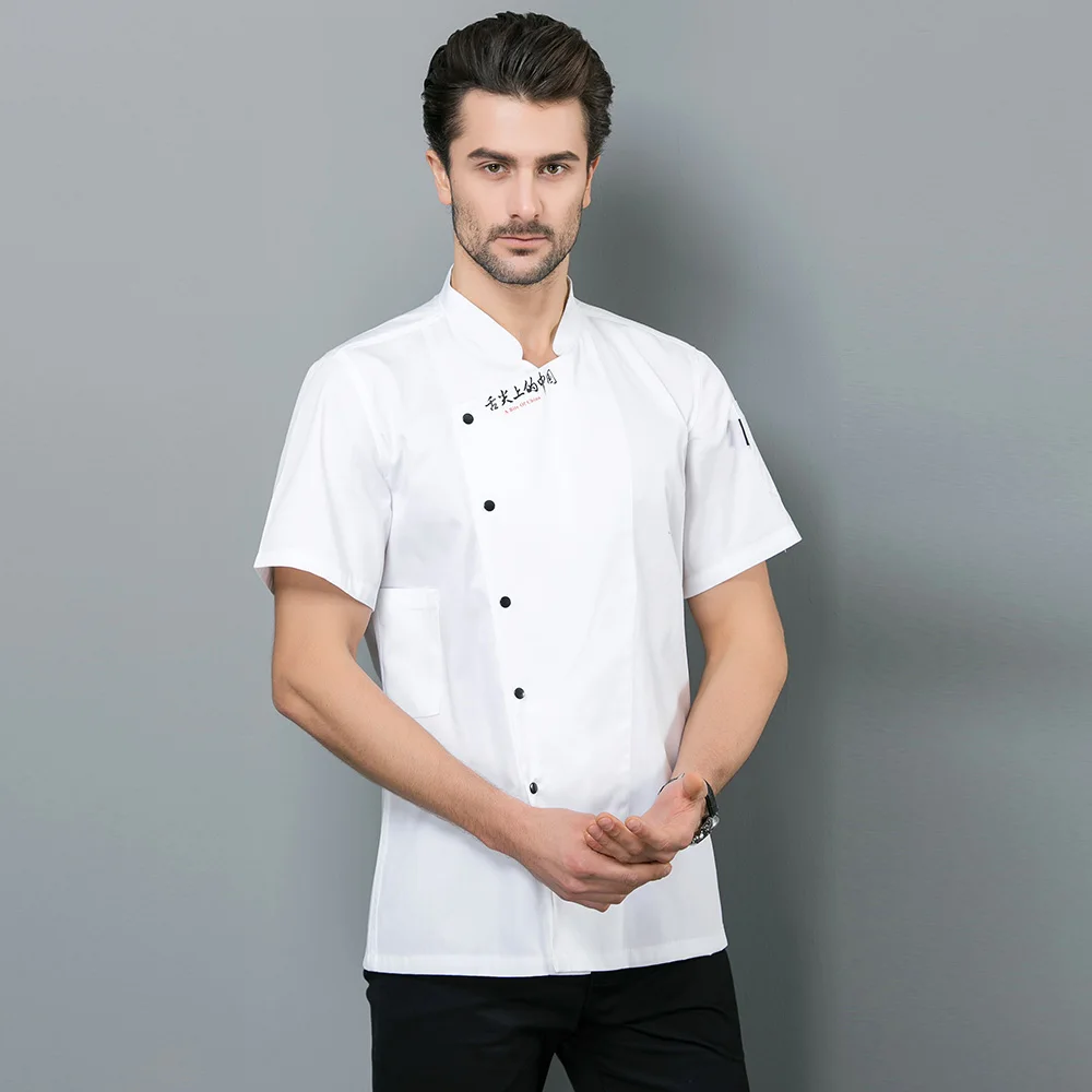 » Free Shipping Short Sleeve Restaurant Chef Kitchen Work Uniforms Double Breasted Sushi Bakery Cafe Waiter Catering Food Service Jackets Aprons