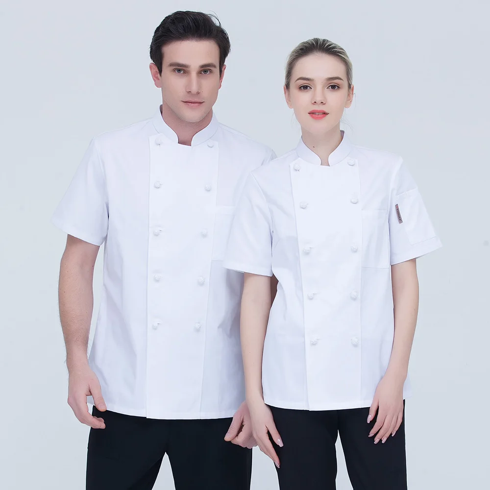 Get high quality double breasted white chef shirts restaurant chef uniforms catering work clothes short sleeves Chef Jackets M-4XL