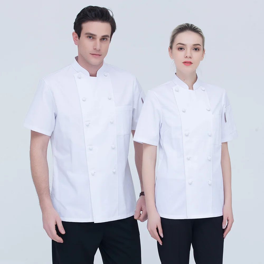 » Get high quality double breasted white chef shirts restaurant chef uniforms catering work clothes short sleeves Chef Jackets M-4XL