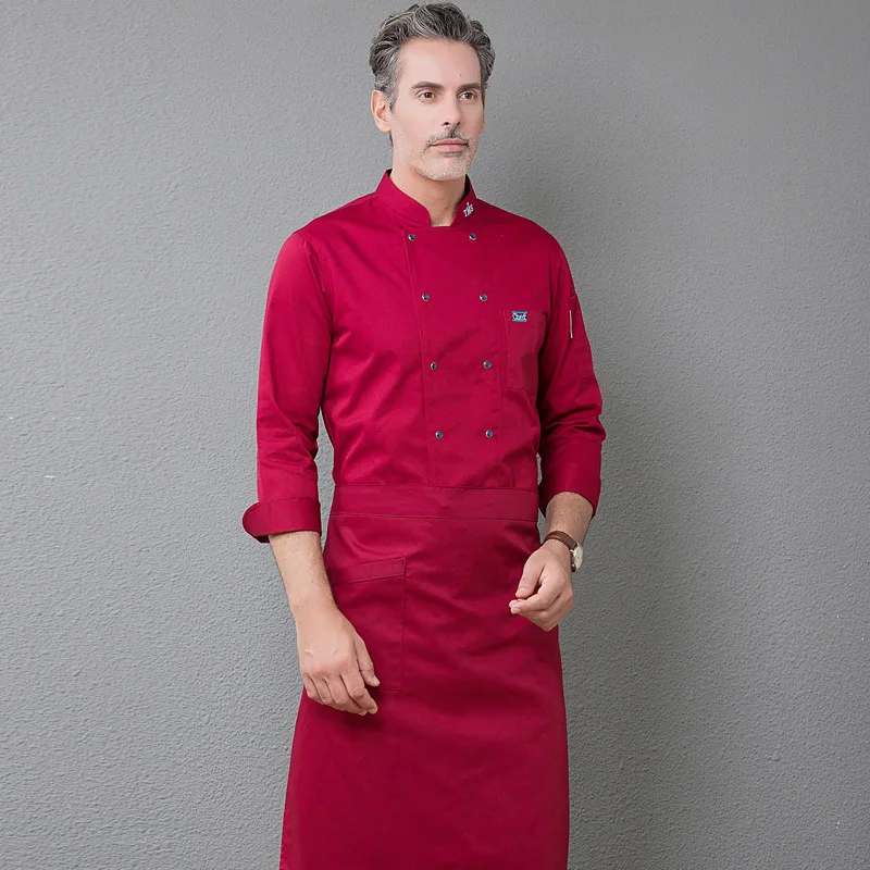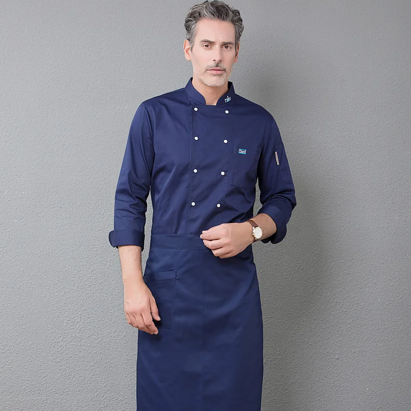New Long Sleeve Chef Uniform Master Cook Restaurant Hotel BBQ Kitchen High Quality Workwear Clothing Food Service Chef Tops Blue