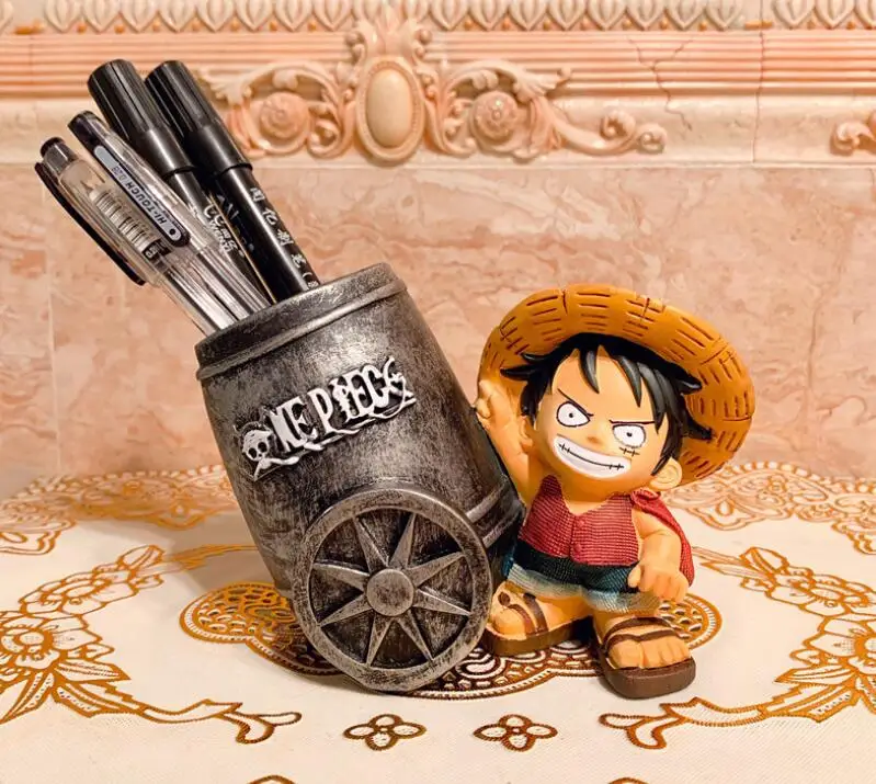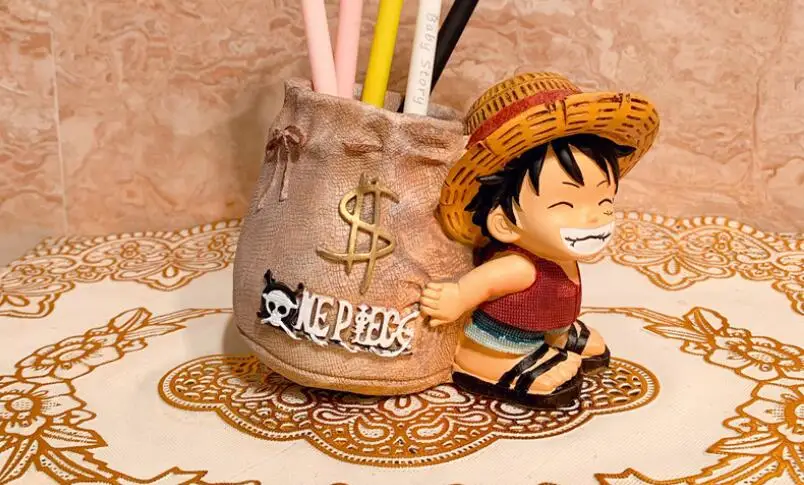 » Promo Anime One Piece Luffy resin Action Figure Office Desk Pen Holder Collectible decoration action figurines Boy Toys creative gifts