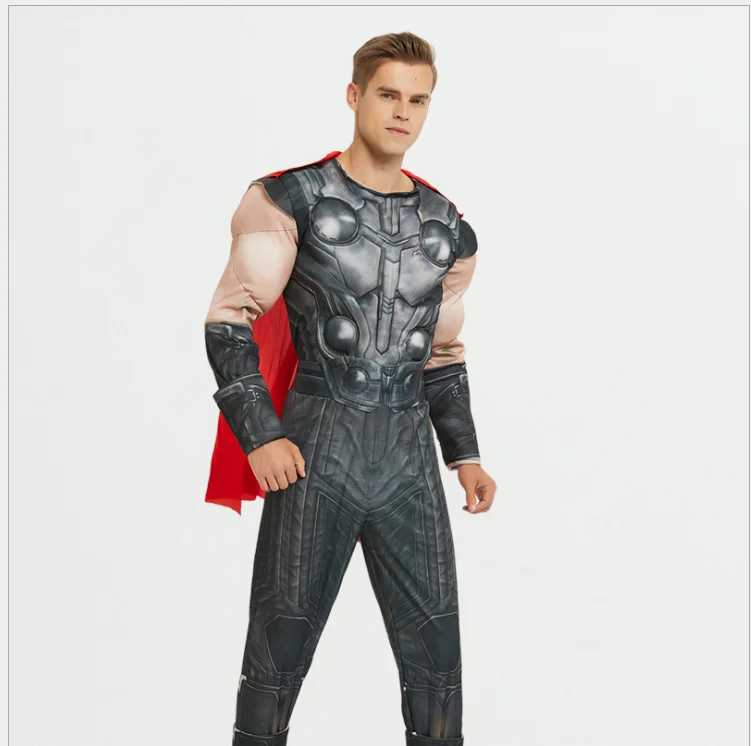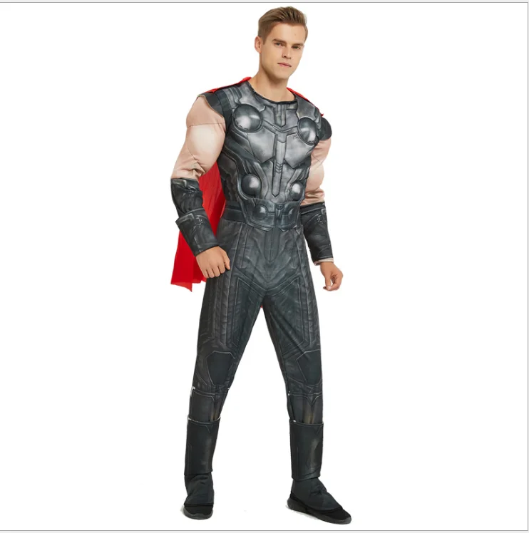 Discount Marvel new Thor Movie Adult Cosplay black one piece muscle suit Cape storm Tomahawk Costume