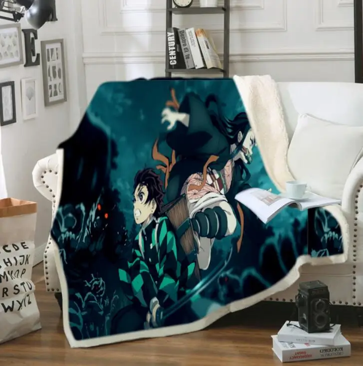 » Buy New 2019 Anime Demon Slayer Kimetsu no Yaiba Printed Velvet Plush Throw Blanket For Kid Adult Gift Soft Warm Bedding Blanket