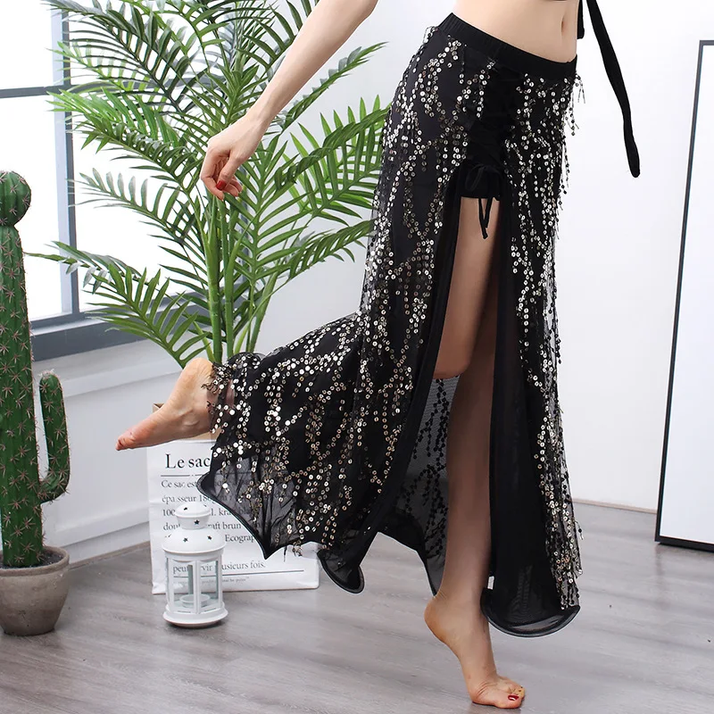 » Best feecolor Belly dance practice clothes 2019 new sequins fringed skirt beginners practice clothes sexy performance costumes