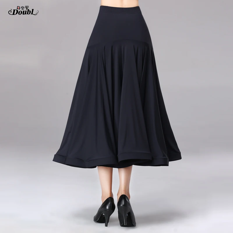 Limited Doubl Elastic National Standard Ballroom Skirts New Modern Long Waltz Skirt Show Expansion Black very full Ice silk fabrics