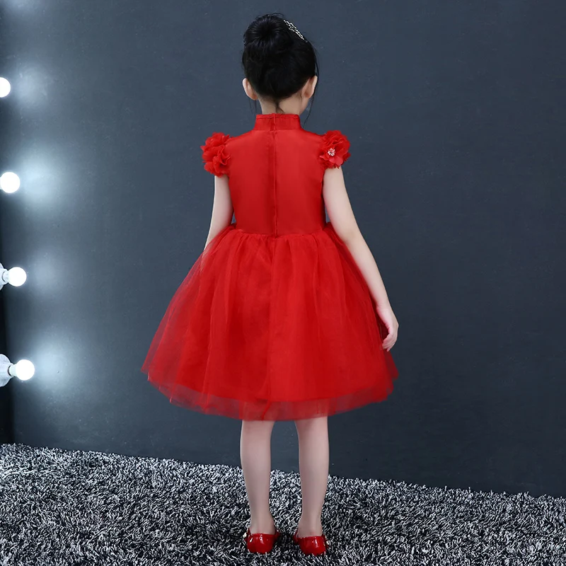 New HAIJINMINGWEN red peacock skirt costumes fluffy gauze princess performance clothing festive flower lace hook flower dress