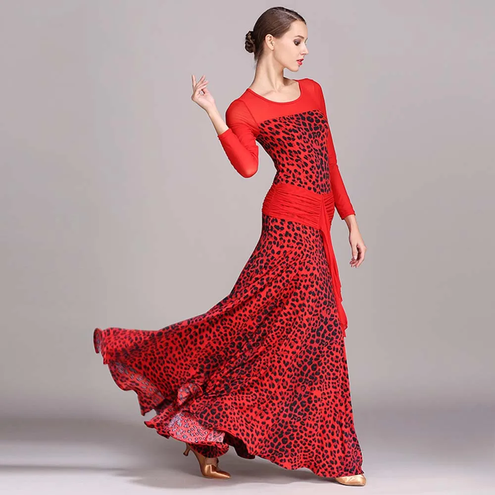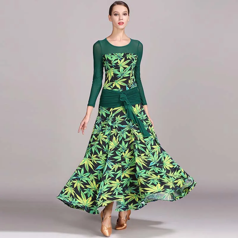 Special Product 2020 Ballroom Dance Competition Dresses Waltz Dress Standard Dance Dresses Elegant D0374 Big Ruffled Hem Mesh Sleeve
