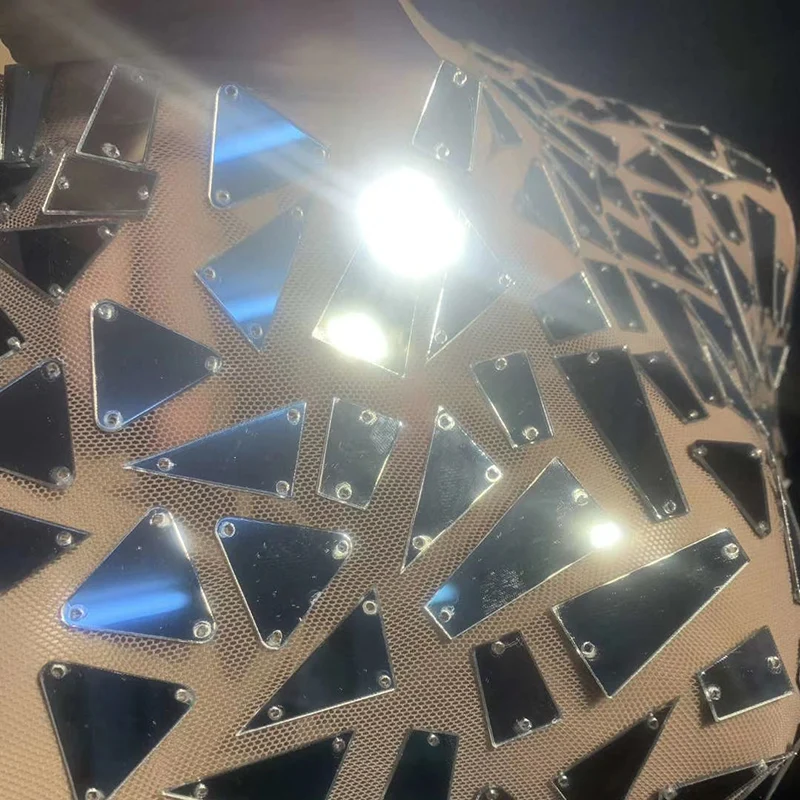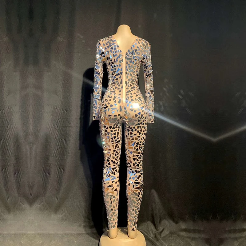 Buy Sparkly mesh yarn silver lens jumpsuit stage performance suit bar concert DJ singer/dancer costume