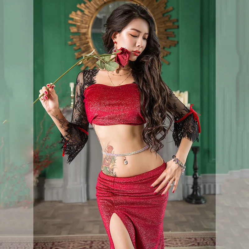 Free Shipping Velvet Belly Dance Practice Clothes New Autumn Skirt Set Adult Oriental Indian Dancing Beginner Dancer Group Performance wear