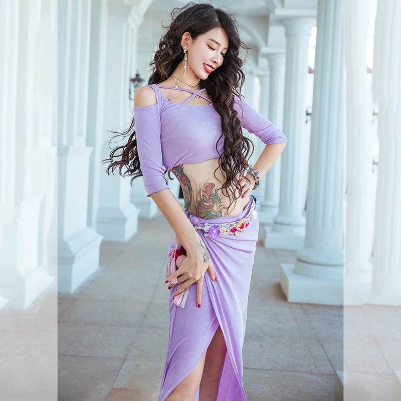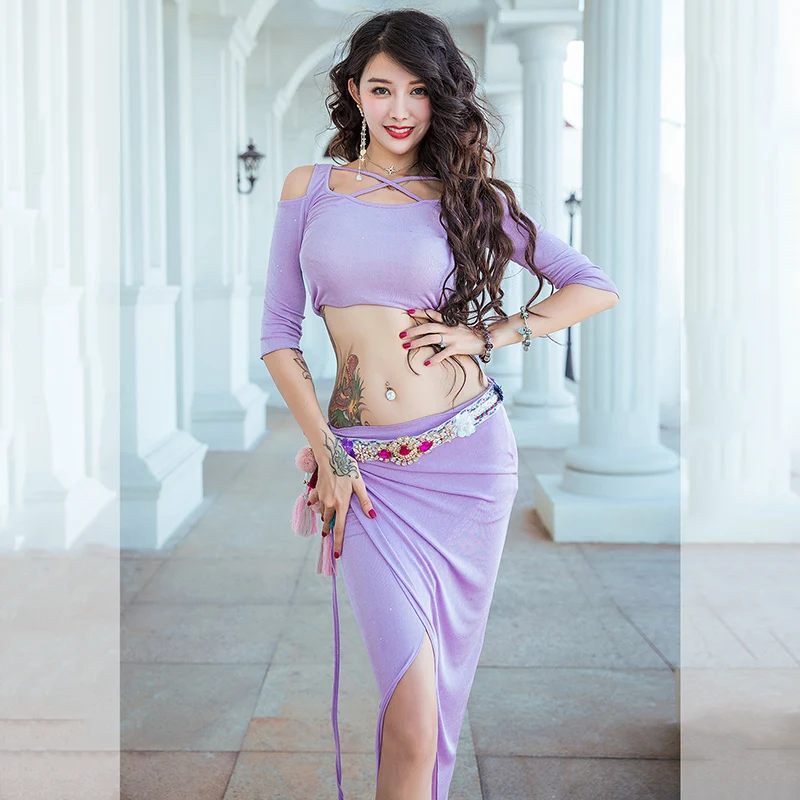 » Limited Woman Belly Dance Practice Clothes New Autumn Skirt Set Adult Oriental Indian Dancing Beginner Dancer Group Performance Wear