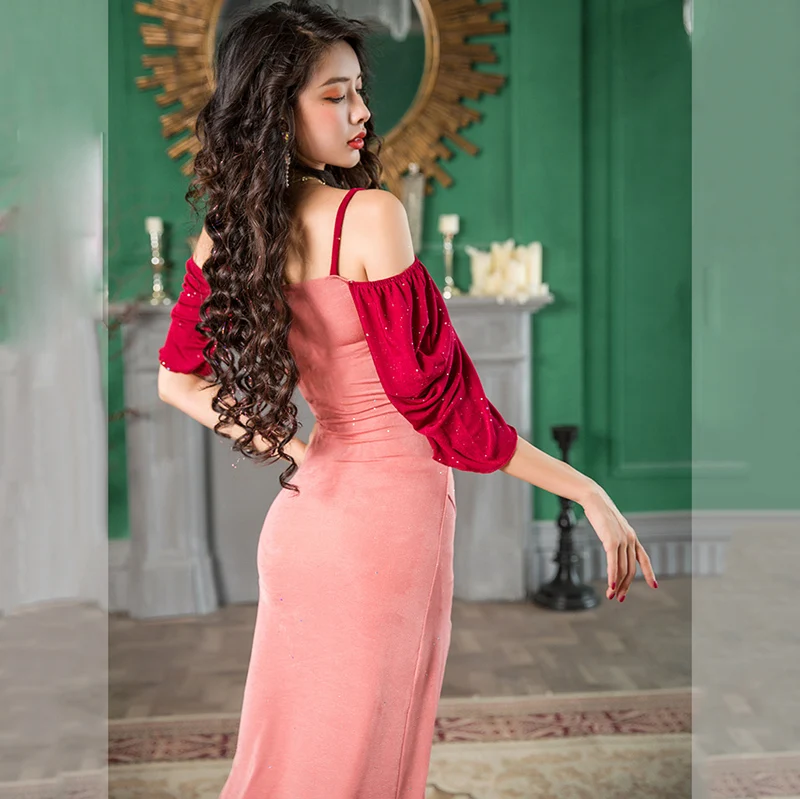 Promo Women belly dance training performance suit one-piece Oriental Dance suit in autumn winter belly dance uniforms long dress