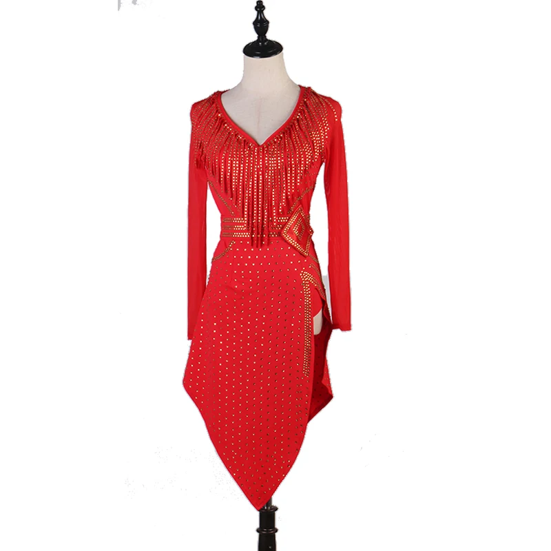 » Buy 2020 Latin Dance Dress Women Latina Salsa Latin Dance Competition Dresses Fringe CHEAP Customize D0162 Split Hem Rhinestones