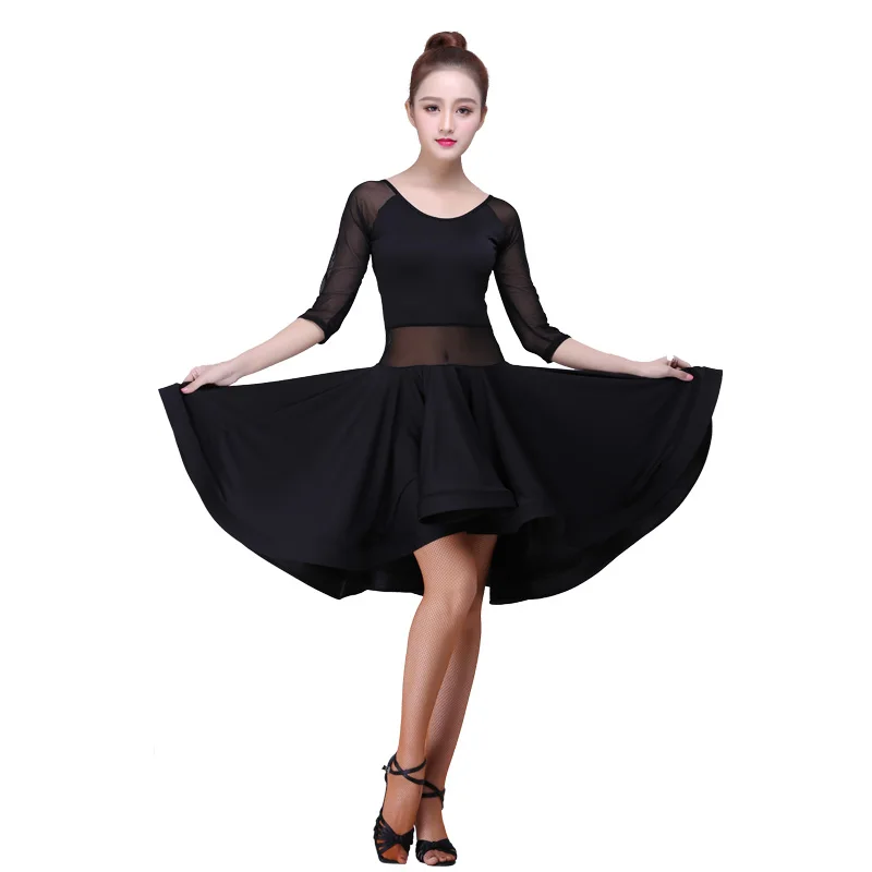 » Cheap Latin Dance Skirt for Adult Women's Sexy Hollow Out Fishbone Skirt for Latin Samba Tango Black Dance Dress with Safety Pants
