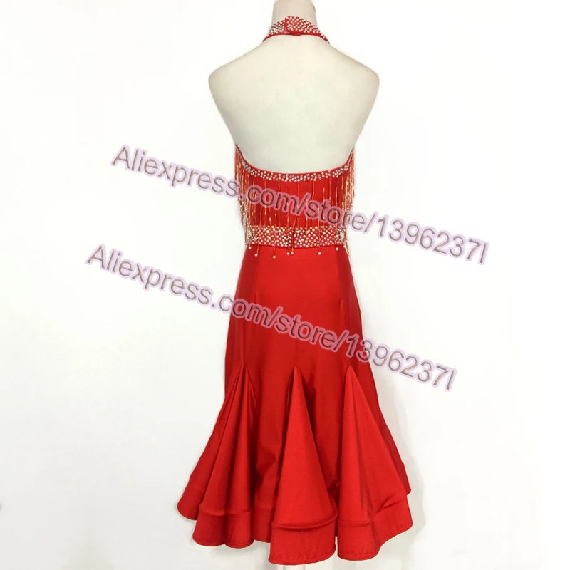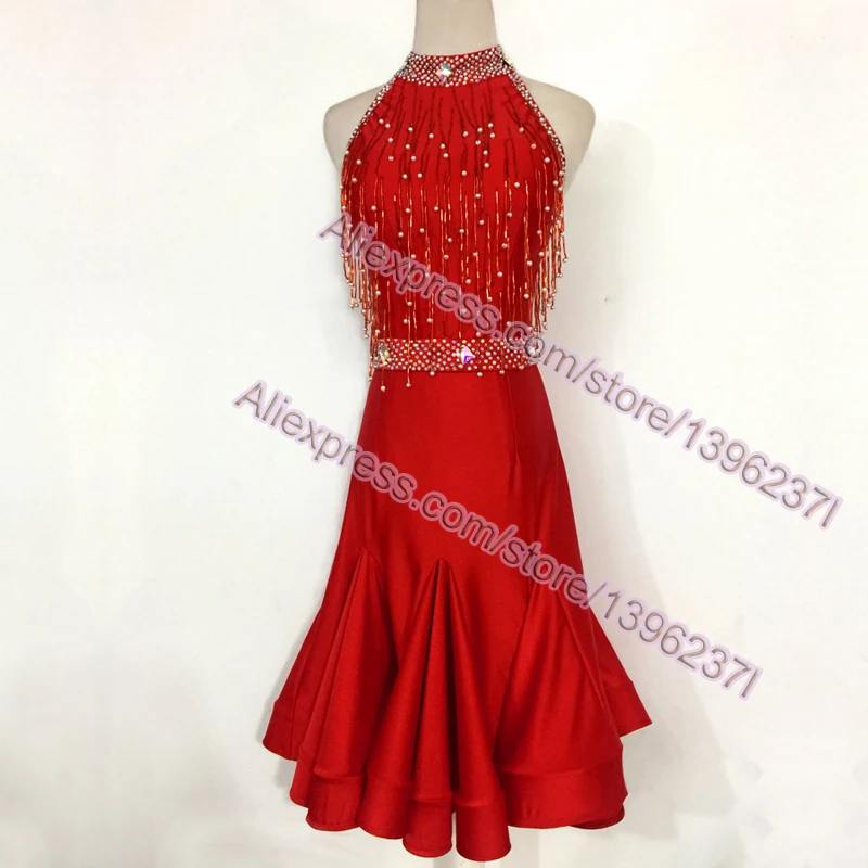 » Limited Latin Competition Dance Dress New Women Diamonds Latin Costume Red Color Lady's Standard Samba Rumba Latin Dancing Skirt