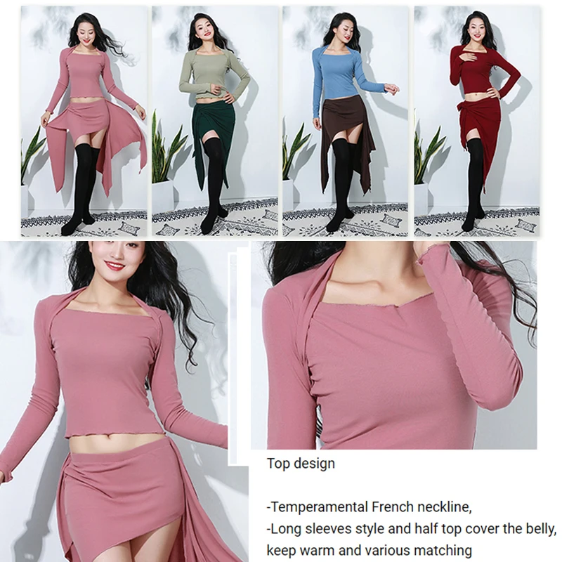 » New Women Belly Dance Costume Set 2pcs Top Skirt Autumn Winter Bellydance Practical Clothing Stage Performance Dancewear Competition
