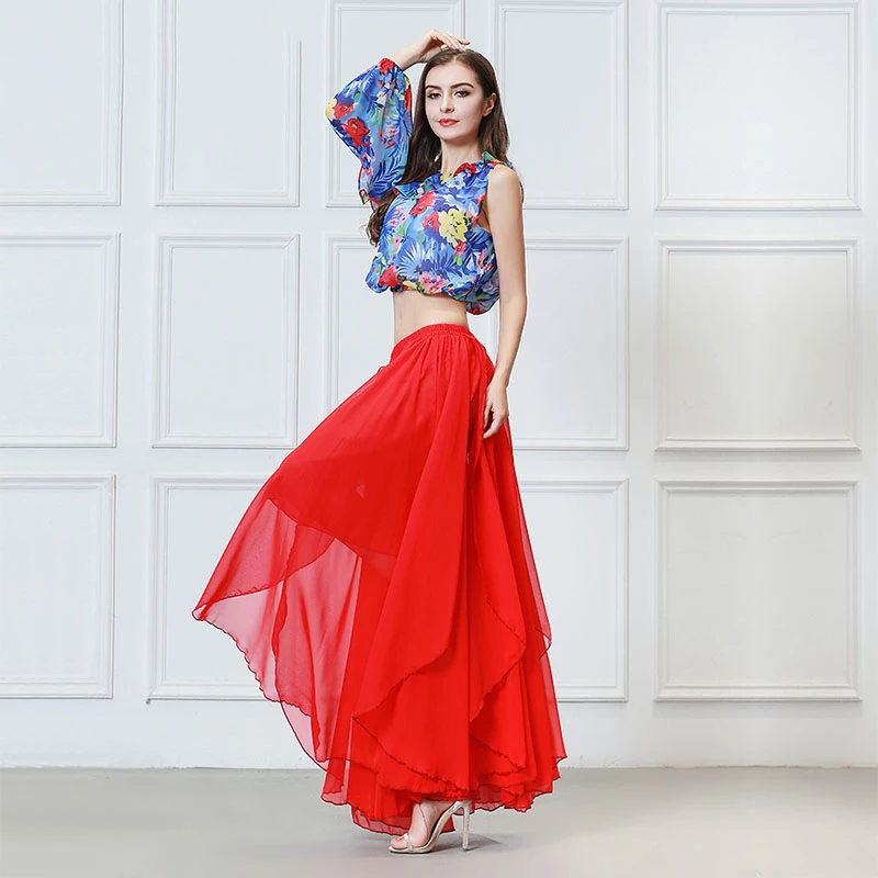 Promo Women Belly Dance Costume Set 2 Piece Long Chiffon Skirt Bellydance Dancer Practice Dance Wear Dancer Teamwear 2 Split Dancewear