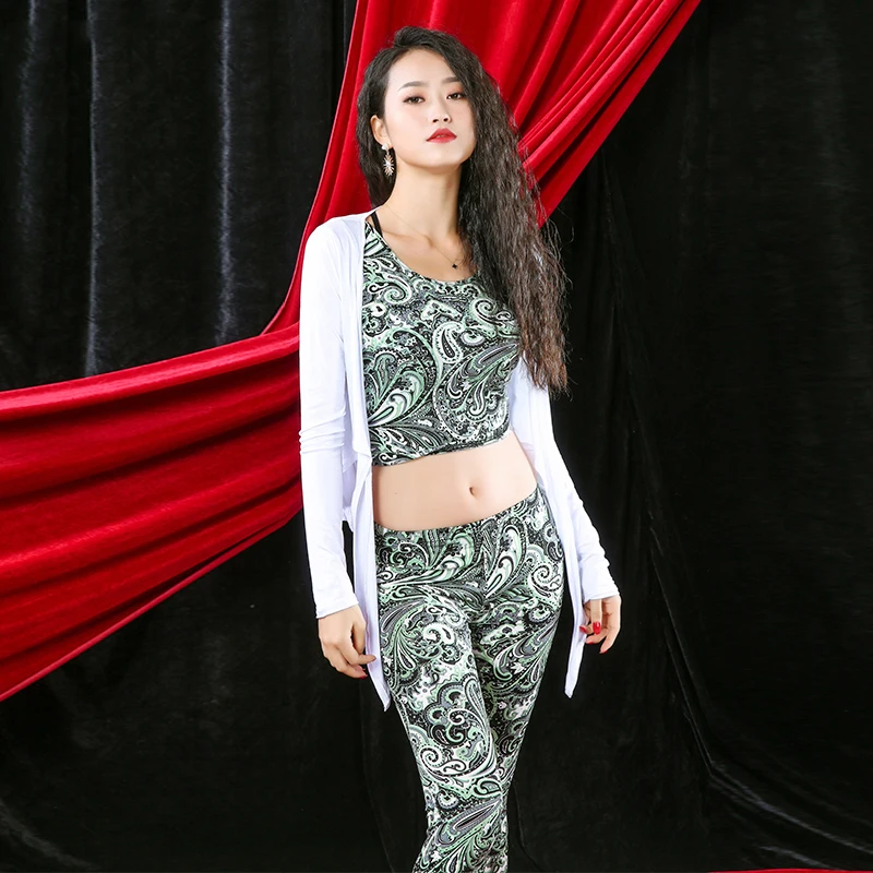 Promo Women Belly Dance Costume Set Flower Print Bellydance Training Suit 2pcs Top Pants Dancing Practice Outfit Stage Dancewear