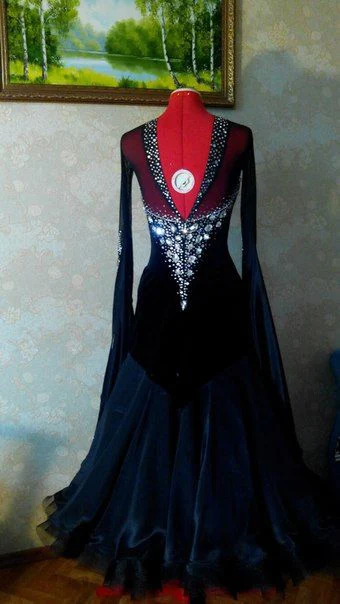 » Special Advanced Ballroom Competition Dance Dress Black Standard Modern Skirt High Quality Women Waltz Ballroom Dance Dresses