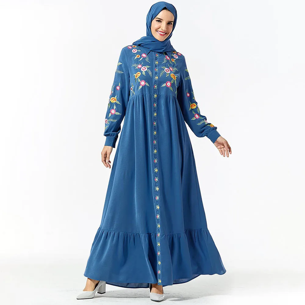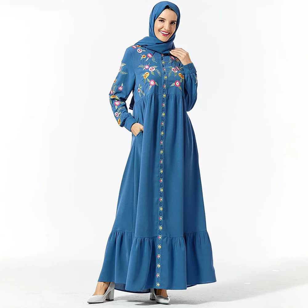 » Buy Islamic Clothing Muslim Dress NO Hijab Embroidery Kaftan Abaya Kimono Dubai Turkish Robe Oversize Autumn 2019 Blue Party Formal