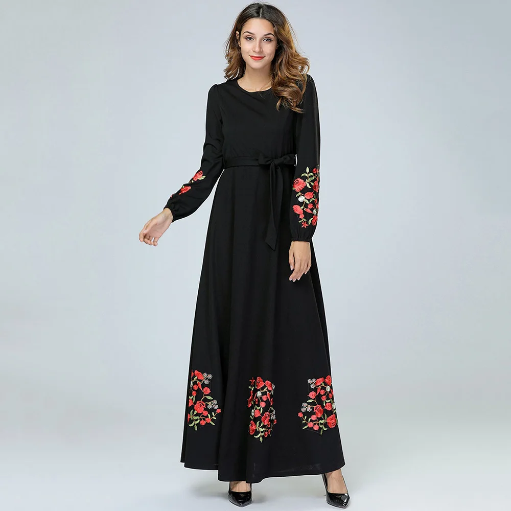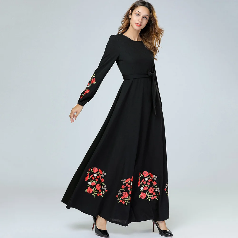 Buy Muslim long Robes European and American large loose embroidered long-sleeved dresses