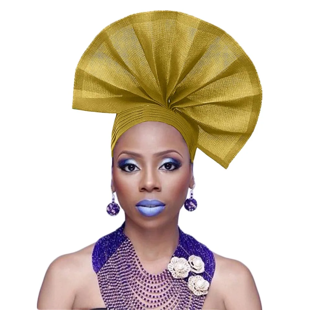 Cheap Fan aso oke headwrap African aso oke headtie fan auto gele aso ebi nigerian headwear fashion headgear