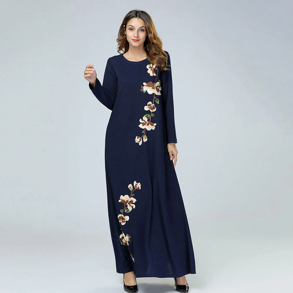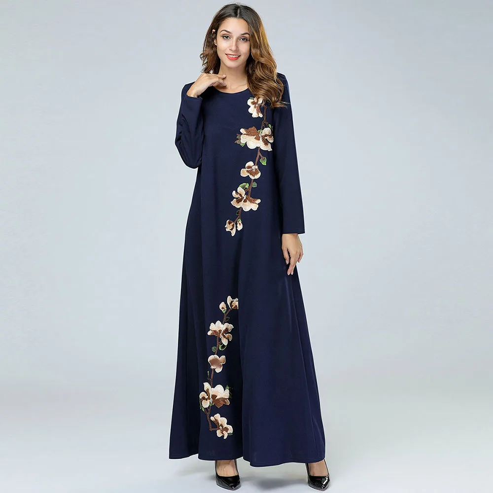 » Limited Large Size Women's Arab Muslim New Embroidered Loose Women's Long Dresses Elegant Ethnic Blue A-Line Dresses Vintage 4XL