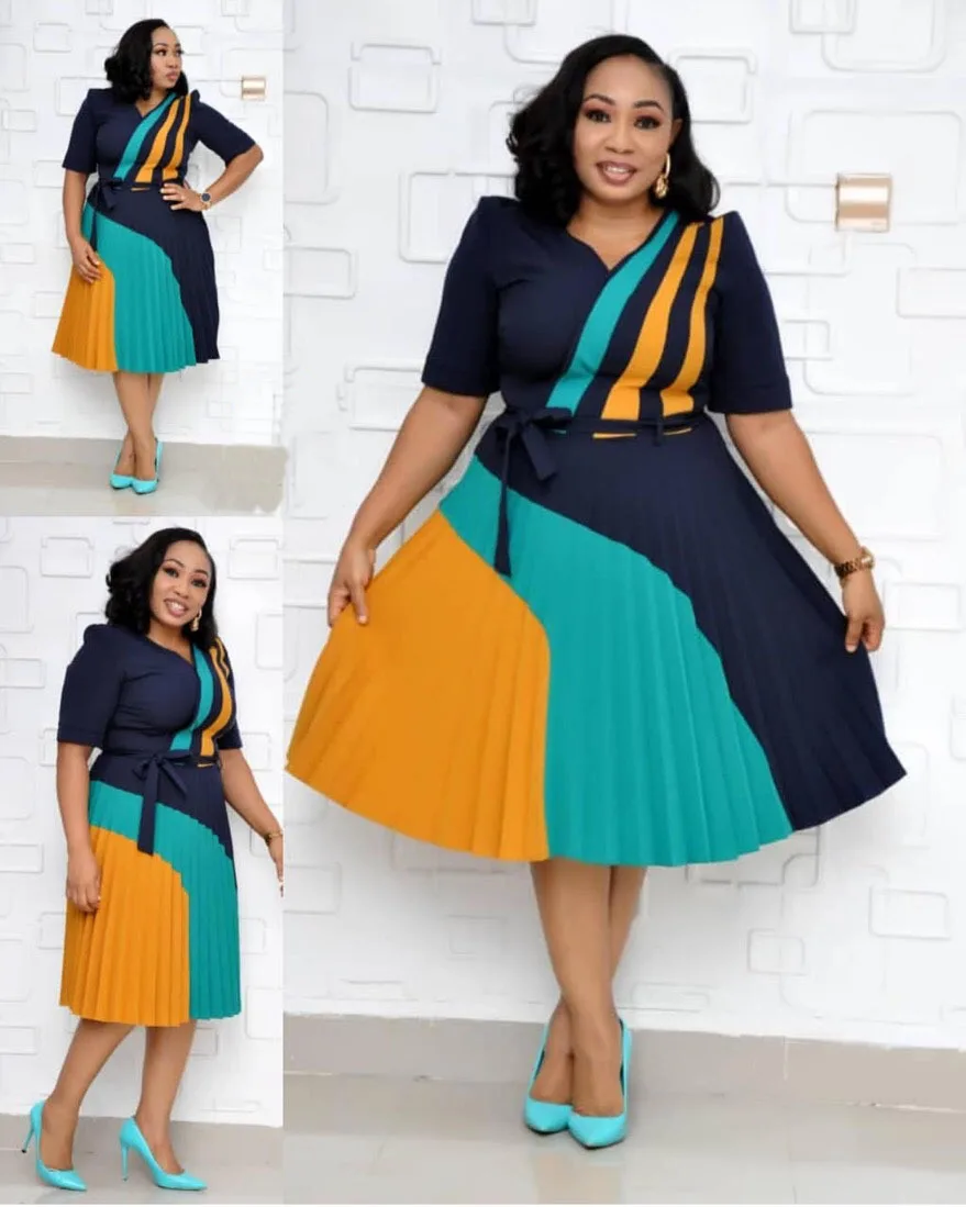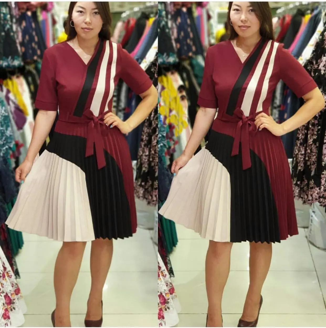 Best African national style qiu dong female dress sells very well V collar medium sleeve clanging color patchwork color 100 plait mak