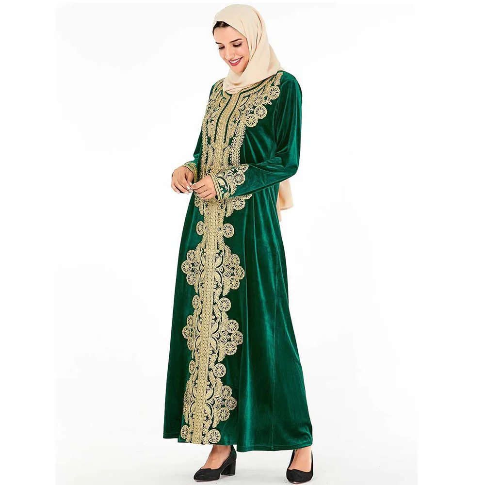 Get Fashion large size women's gold silk embroidery with diamond gold velvet dress (not including headscarf)