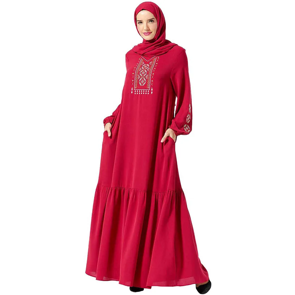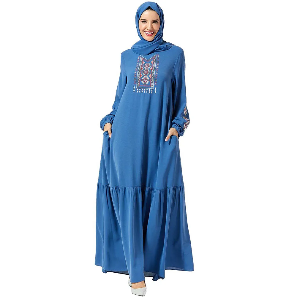 » Get Islamic Clothing Abayas Kimono Dubai Muslim Dress NO Hijab Embroidery Kaftan Arab Turkish Robe Oversize Autumn 2019 Party Formal