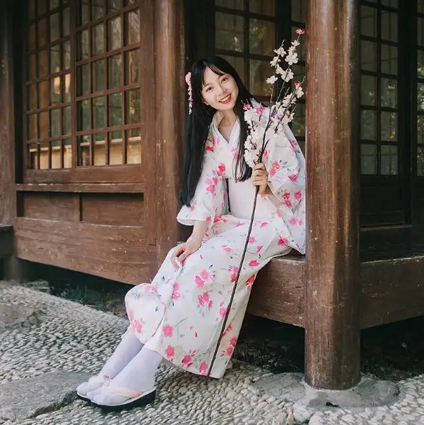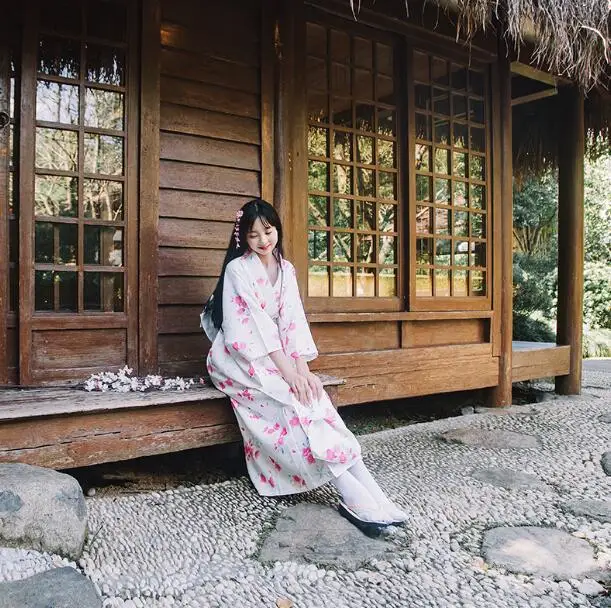 Get Woman Kimono Outer Garment Bathrobe Costume Girl Sweet Dress Japanese Kimono Woman Flower Shoot Clothing