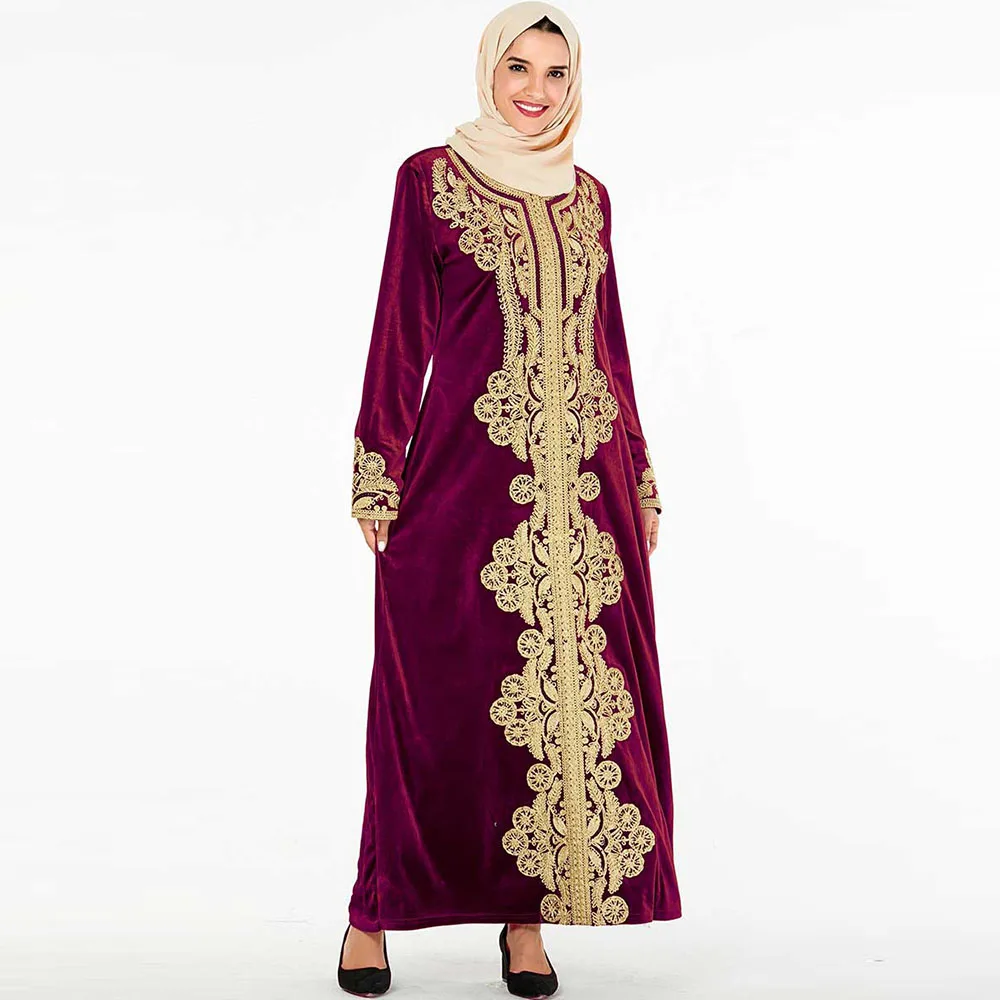 Special Fashion large size women's purple embroidered long-sleeved Arabian gold velvet dress (not including headscarf)